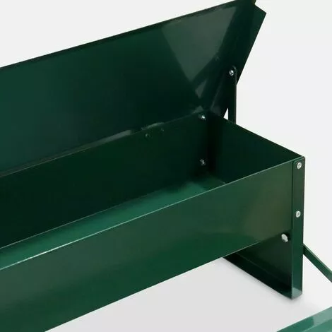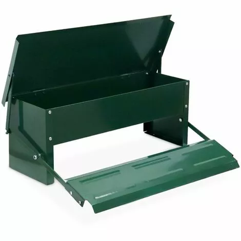 Stockez jusque 5kg de nourriture dans cette mangeoire à poules. En acier galvanisé, elle peut s’utiliser en extérieur. Vos poules peuvent se nourrir toute seule en appuyant sur la pédale qui soulèvera le couvercle, à la condition qu’elles pèsent au minimum 500 grammes. Elle seront alors plus autonomes et cela évitera le gaspillage alimentaire<br/>Caractéristiques techniques