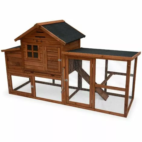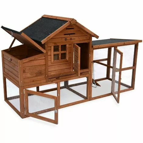 -2 portes d’entrée pour l’enclos avec loquet et une fenêtre pour améliorer la visibilité à l’intérieur du poulailler sans devoir ouvrir la porte de l’abri.