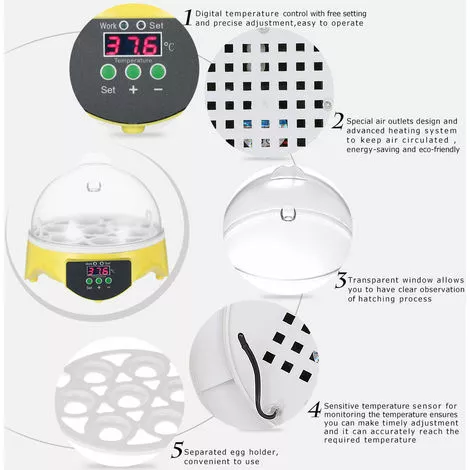 Ce mini incubateur numérique peut contenir 7 œufs.