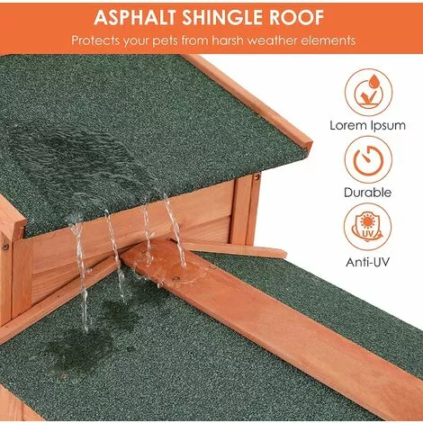 - ★Toit pratique : Le toit de ce clapier à lapin est en asphalte. Il est non seulement résistant à la corrosion mais aussi à la pluie. L’espace de loisirs ne fuira pas les jours de pluie, vous pouvez donc l’utiliser à l’extérieur en toute confiance. Le toit de l’aire de repos peut être ouvert pour la ventilation lorsqu’il ne pleut pas.