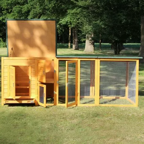 Poulailler en bois pour jardin extérieure 5 poules Cage Canard 2 perchoir Nichoir 215 x 80 x 68 cm-Modèle 149 FLEXI Extra