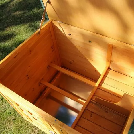 Pour dormir et se reposer, les poules ont deux perches de 52 cm de long disponibles.