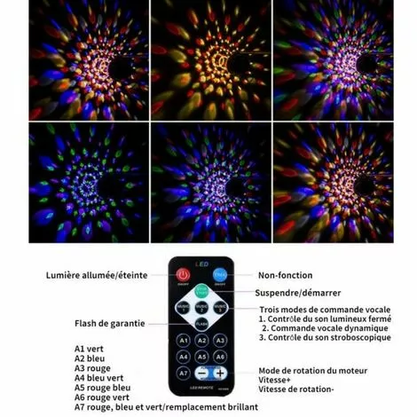 Caractéristiques: aspect exquis, facile à installer et à utiliser Mode de fonctionnement : mise sous tension (contr?le du son, stroboscope, automoteur, contr?le de la vitesse, rotation de la lumière, etc.)