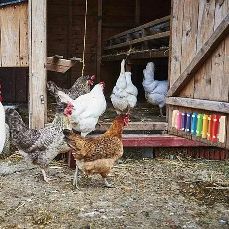 [Facile à réparer]: Des jouets amusants de xylophone de poulet peuvent être installés sur des poulaillers, des cages ou des clôtures. Ceci est un jouet de poulet décoratif, pas un véritable instrument de musique.