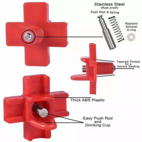 【Paquet et Dimension】 Vous recevrez 10 abreuvoirs volailles rouges. Sa taille est de 32,5 mm x 34 mm,