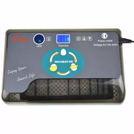 Couveuse possédant un système de retournement automatique et grille de répartition des œufs ajustable pouvant recevoir des œufs de tous types de volailles. Dimensions : L. 37,5 x l. 25,5 x H. 17 cm Capacité : 12 œufs Puissance : 40W Panneau de contrôle à affichage digital Retournement automatique Contrôle automatique de la température Mire-œuf intégré Grille de répartition des œufs ajustable Ventilateur intégré Bac d’humidification Marque : HHD.