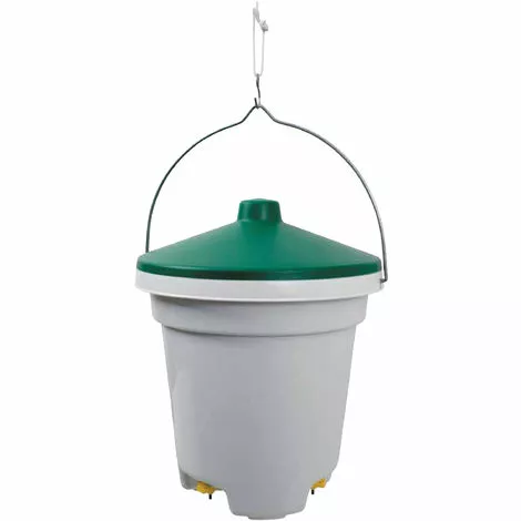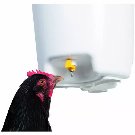 Cet abreuvoir suspendu est idéal pour garder une eau toujours propre et pour limiter le gaspillage. Cet abreuvoir, d’une capacité de 12 litres, est composé de 3 pipettes multidirectionnelles par lesquelles les poules pourront s’abreuver. Les volailles sont naturellement attirées par le brillant des pipettes. En tapant la pipette avec leur bec, les poules pourront boire à leur aise. Cet abreuvoir à suspendre convient à toutes les volailles, quel que soit leur âge. Même les poussins pourront l’utiliser ! Très pratique, cet abreuvoir se remplit par le haut. Lors du remplissage vous pourrez le poser au sol sans vous soucier d’abimer les pipettes qui seront protégées. Cet abreuvoir est fourni avec un kit de suspension réglable en hauteur par rapport au sol. Caractéristiques de l’abreuvoir suspendu : Nombre de pipettes : 3 Matière : plastique résistant capacité : 12 litres Pipette de remplacement: 9509010012.