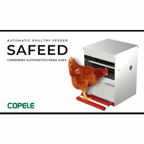 Mangeoire anti-nuisibles Safeed en acier galvanisé, d’une capacité de 6 kg pour nourrir jusqu’à 4 à 5 poules. Cette mangeoire est conçue pour empêcher les rongeurs, les oiseaux ou les limaces d’accéder à la nourriture, ou qu’elle se déverse au sol. L’ouverture de la trappe est extrêment silencieuse pour ne pas effrayer les poules. Lorsque la poule monte sur les barres rouges, elle déclenche l’ouverture de la trappe et accède ainsi à la nourriture. Il est possible de régler le déclenchement de l’ouverture de la trappe en fonction du poids de la poule, 3 positions de réglage sont possibles: 250 g, 500 g et 750 g. La mangeoire peut être posée au sol, ou suspendue. Elle peut se placer à l’intérieur ou à l’extérieur du poulailler. La mangeoire anti-nuisibles Safeed dispose de hublots transparents de chaque côté pour contrôler son remplissage en aliments sans avoir besoin d’ouvrir le couvercle. Son système anti-gaspillage permettra de faire de réelles économies ! Capacité : 6 kg Couleur : métal Matière : tôle galvanisée Dimensions : 25 x 37 x 38 cm Livré déjà montée