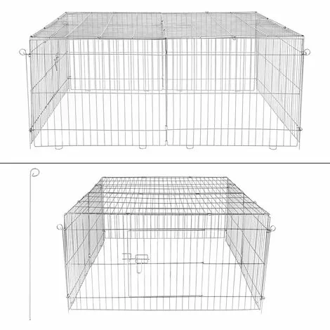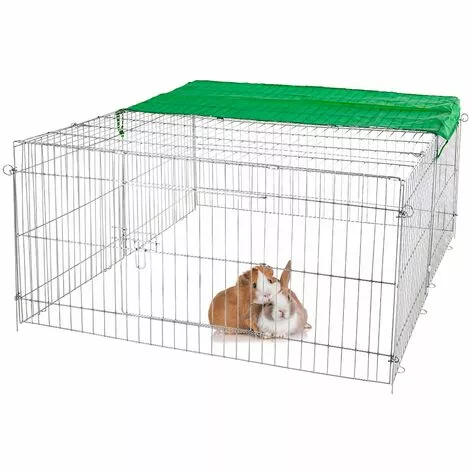 ECD GERMANY Cage Clapier Enclos Extérieur Avec Pare-soleil En Métal Galvanisé 140x60x113 Cm