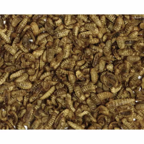 Ces larves de mouche soldat noire séchées (Hermetia illucens) sont croustillantes et appétantes. Plus qu’une simple friandise, elles sont un complément de protéines, acides aminés, Oméga 3 et 6 et calcium.