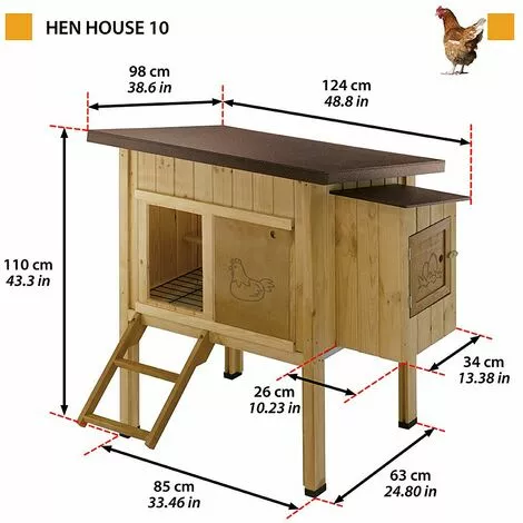 Si vous souhaitez élever des poules dans le jardin, voici un beau poulailler pour l’extérieur, robuste et solide, fabriqué en bois de pin nordique certifié FSC à partir de forêts gérées de manière responsable, et conçu pour assurer une bonne isolation thermique et une parfaite tenue de la structure. Le toit du hen house est peint avec une résine imperméable spéciale résistante aux différentes conditions climatiques. Le processus de peinture de revêtement assure une meilleure pénétration de la peinture dans le bois et par conséquent, une durée de vie plus longue.