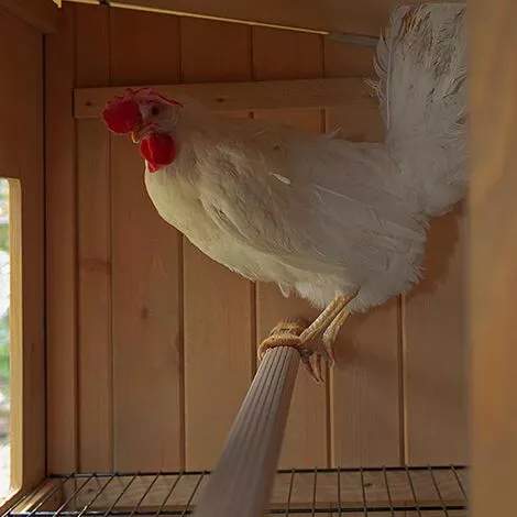Ce modèle Hen House 10 est adapté pour accueillir jusqu’à 4 poules. Surelevé du sol, la maisonnette repose sur des pieds solides équipés avec plastique pour garantir une meilleure isolation au sol. Une échelle permet aux poules d’entrer ou de sortir facilement, la porte d’entrée est coulissante. A l’intérieur, le hen house est divisé en deux zones : l’une avec un perchoir métallique et une grille de protection, l’autre dédiée à la collecte des œufs, accessible de l’extérieur par une porte latérale équipée d’un verrou de sécurité.