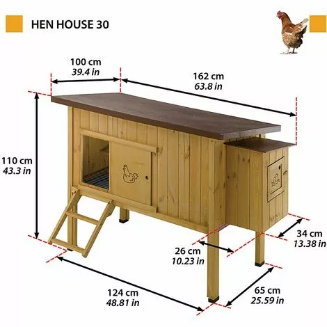 Si vous souhaitez élever des poules dans le jardin, voici un beau poulailler pour l’extérieur, robuste et solide, fabriqué en bois de pin nordique certifié FSC à partir de forêts gérées de manière responsable, et conçu pour assurer une bonne isolation thermique et une parfaite tenue de la structure . Le toit du hen house est peint avec une résine imperméable spéciale résistante aux différentes conditions climatiques. Le processus de peinture de revêtement assure une meilleure pénétration de la peinture dans le bois et par conséquent, une durée de vie plus longue.