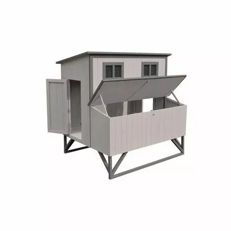 WILTEC Poulailler Gris 310x150x150cm Cm Bois Nichoir & Enclos Bac Amovible Cage Élevage Basse-cour