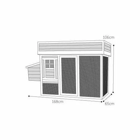 Plateau en plastique pour un nettoyage facile ; structure en bois renforcée / 2 pondoirs à toit ouvrant verrouillable / 1 perchoir à lintérieur / Fenêtre en plexiglas / Bac de fleurs – de plantation dherbes aromatiques sur la partie supérieure / Nous vous déconseillons de verser du sable directement dans le bac, sans protection. Nous vous conseillons plutôt de planter les fleurs – herbes aromatiques dans des pots en plastique que vous placerez dans le bac en bois. / Fabriqué en bois durable – respectueux des forêts / Plateau de rechange : 310003