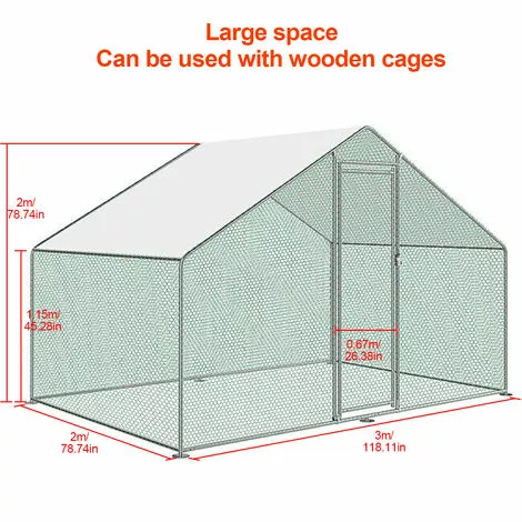 Imperméable et résistant aux UV : la couverture imperméable et résistante aux UV peut garantir que la volaille n’est pas affectée par les intempéries, économise des aliments précieux de la pluie, économise les coûts d’alimentation, plus d’aliments gaspillés ou volés. Cette étanchéité réduit également la contamination causée par les intempéries, y compris l’eau de pluie, la neige, la poussière et le sable.