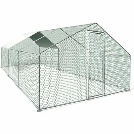 Conçu et pensé par des éleveurs pro, cet enclos robuste en acier galvanisé d’une maxi surface de 18 m² permet à votre basse-cour de gambader en toute sécurité !Ce parc grillagé (mailles environ 25×25 mm / 1 mm d’épaisseur) offre un espace bien fermé pour protéger vos volailles des prédateurs comme les renards. Pratique avec sa large porte à fermeture sécurisée par loquet (tube grand diamètre 32 mm), cet enclos est l’habitat extérieur idéal pour un élevage de 20 à 25 poules.Ses grandes dimensions, longueur 6 M x largeur 3 M x hauteur 2 M, permettent à vos animaux une liberté de mouvement et un espace optimal pour leur plus grand confort.Equipé d’une bâche de toit waterproof et anti-UV 150 gr/m² en polyester, cette volière offre une partie ombragée et une protection contre la pluie.Astuce : pensez à ancrer les pieds de votre enclos pour qu’aucun intrus ne puisse creuser et passer par dessous sous votre grillage.Vous pouvez compléter cette volière en installant un poulailler bois à l’intérieur pour permettre la ponte de vos poules et ainsi récolter de bons œufs frais tous les jours.Dimensions de l’enclos poulailler 18 m² parc grillagé- Dimensions totales hors tout : Longueur 600 CM x largeur 300 CM x Hauteur 200 CM- Diamètre des tubes de la structure : 25 MM- Taille des mailles : environ 25×25 MM – Grillage triple torsion- Piquet d’ancrage non fourni- Grillage vert ou gris selon arrivage- À monter soi-mêmePour plus de facilité de montage, nous vous conseillons d’être 2 personnes (temps estimé : 60 min).* Poulaillers en bois vendus séparément sur notre boutique en ligne.Retrouvez toutes nos différentes tailles d’enclos disponibles sur notre boutique en ligne :- Enclos poulailler 3m² parc grillagé- Enclos poulailler 6 m² parc grillagé- Enclos poulailler 9 m² parc grillagé- Enclos poulailler 12 m² parc grillagé- Enclos poulailler 16 m² parc grillagé- Enclos poulailler 24 m² parc grillagéDécouvrez également toute notre gamme d’enclos poulaillers sur notre boutique en ligne ! – HORS CORSE -article non livrable en Corse