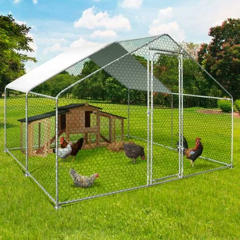 Vous souhaitez protéger votre élevage de volailles en leur offrant un nouvel espace ? Ajoutez un enclos au poulailler d’extérieur, pour une zone de promenade étendue et surtout sécurisée. Avec cette clôture grillagée vous mettez vos poules et autres animaux de basse-cour à l’abri des prédateurs. Renards, chiens, chats et oiseaux de proie seront incapables d’attaquer vos volailles.Grâce à une bâche de toit imperméable en polyester et anti-UV, vos gallinacés sont protégés non seulement de la pluie, mais également du soleil l’été. Offrez à la fois une aire de détente et un abri pour vos poules et autres oiseaux de basse-cour où ils pourront s’ébattre en toute sécurité.Cet enclos grillagé pour poules peut accompagner votre poulailler en bois ce qui permet d’offrir un cadre de vie naturel à vos animaux. Accédez facilement à l’enclos des poules grâce à sa porte sécurisée avec loquet et allez ainsi récupérer les œufs de vos volatiles sans risquer de les voir s’échapper.Facile à monter et d’une grande superficie de 9 M², la volière en acier vous permet d’élever entre 6 et 8 poules dans votre jardin.Astuce : pensez à ancrer les pieds de votre enclos pour qu’aucun intrus ne puisse creuser et passer par dessous sous votre grillage.N’hésitez plus, protégez vos poules ou animaux de basse-cour et offrez leur de l’espace ! Dimensions de l’enclos poules 9 m² parc grillagé 3×3 M- Dimensions totales hors tout : Longueur 300 CM x largeur 300 CM x Hauteur 200 CM- Diamètre des tubes de la structure : 25 MM- Taille des mailles : environ 25 x 25 MM- Piquet d’ancrage non fourni- Grillage vert ou gris selon arrivage- À monter soi-mêmePour plus de facilité de montage, nous vous conseillons d’être 2 personnes (temps estimé : 60 min).Poulaillers en bois vendu séparément sur notre boutique en ligneRetrouvez toutes nos différentes tailles d’enclos disponibles sur notre boutique en ligne :- Enclos poulailler 3m² parc grillagé- Enclos poulailler 6 m² parc grillagé- Enclos poulailler 12 m² parc grillagé- Enclos poulailler 16 m² parc grillagé- Enclos poulailler 18 m² parc grillagé- Enclos poulailler 24 m² parc grillagéDécouvrez également toute notre gamme d’enclos poulaillers sur notre boutique en ligne ! – HORS CORSE -article non livrable en Corse