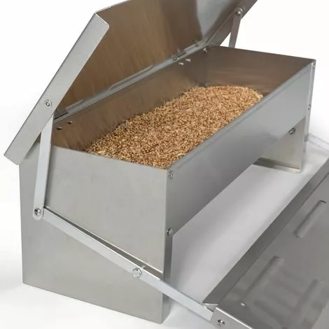 Descriptif de la mangeoire XL pour poules et volaillesNourrissez vos poules en toute tranquillité pendant vos absences avec ce distributeur automatique XL pouvant contenir jusqu’à 5 kg de nourriture.Les poules étant de grandes consommatrices de graines et légumineux, vous n’aurez plus à vous soucier de savoir si elles ont assez de quantité grâce à ce réservoir pour grains XL. Élément incontournable pour un élevage réussi, la mangeoire est équipée d’un couvercle qui s’ouvre lorsque la poule se positionne sur la plateforme prévue à cet effet. Un poids minimum de 500 gr est nécessaire pour actionner le levier. Une telle conception évite aux oiseaux, rats ou autres nuisibles de voler la nourriture de votre élevage. Ce fonctionnement intelligent joue sur le comportement alimentaire naturel de vos poules en leur permettant d’accéder à leur nourriture, uniquement lorsqu’elles ont faim.Avec sa capacité de réserve XL, la mangeoire offre de belles dimensions. Profitez d’un bac pouvant accueillir jusqu’à 5 kg de nourriture et mesurant 51 cm de longueur x 21 cm de largeur x 8.5 cm de hauteur. Vous pourrez nourrir plusieurs poules et cela pendant quelques jours selon la taille de votre élevage. Pratique et résistante, ce distributeur automatique innovant permet de conserver de manière optimale la nourriture de vos poules et évite le gaspillage grâce à ses parois fermées. Dimensions de la mangeoire XL pour poules et volailles- Dimensions totales : Longueur 51 cm x largeur 35 cm x Hauteur 18.5 cm- Dimensions couvercle : Longueur 51 cm x largeur 21 cm- Profondeur du bac : 8.5 cm- Dimensions de la plateforme à levier : Longueur 51 cm x largeur 13 cm- Hauteur du levier : 7 cm- Poids nécessaire sur la plateforme pour ouvrir le couvercle : 500 gr- Capacité de réserve totale : 5 kg- Matériaux : acier galvanisé