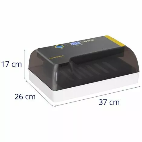 Cette couveuse est dotée d’un panneau de commande simple avec afficheur LED qui permet de régler la température en tout confort. Son intervalle de retournement est lui aussi paramétrable en fonction du type d’œuf et de vos préférences. Tous les réglages choisis sont mis à exécution de façon entièrement automatique par la couveuse professionnelle. Grâce au mire-œufs intégré, il est possible de suivre le développement des poussins. Une fenêtre permet d’inspecter l’intérieur de la couveuse sans l’ouvrir. L’appareil d’incubation accueille 12 œufs de taille standard, 4 œufs d’oie ou 9 œufs de canard à la fois. Ce modèle facile à nettoyer comporte également un réservoir d’eau qui aide à maintenir une humidité constante. Atteignez un taux d’éclosion convaincant avec une couveuse incubato !