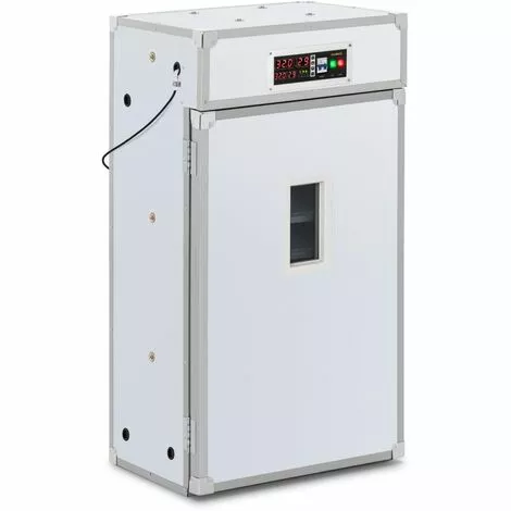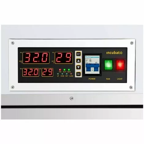 Cette couveuse incubato est dotée d’un boitier en métal robuste dans lequel vous pouvez placer jusqu’à six plateaux contenant des œufs d’oiseaux d’élevage. Elle dispose d’un panneau de commande simple avec quatre afficheurs LED, lequel permet de régler la température et l’humidité avec précision et en tout confort. L’intervalle de retournement peut lui aussi être paramétré en accord avec vos préférences. Tous les paramètres choisis sont mis à exécution de façon entièrement automatique par la couveuse professionnelle. Grâce au mire-œuf fourni, il est possible de contrôler le développement des oisillons. Une fenêtre dans la porte permet d’inspecter l’intérieur de la couveuse sans l’ouvrir. Atteignez un taux d’éclosion imbattable ; optez pour une couveuse automatique incubato !