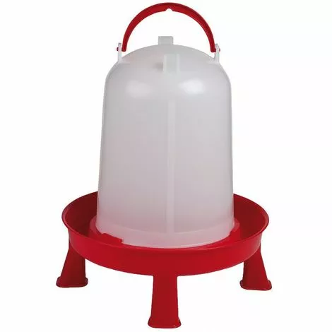 Abreuvoir plastique avec pied détachable. Idéal pour satisfaire la soif de votre volaille. Capacité de contenance de 5 litres, également disponible de 10 litres.