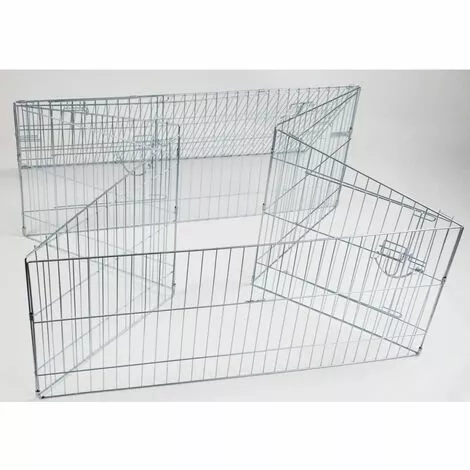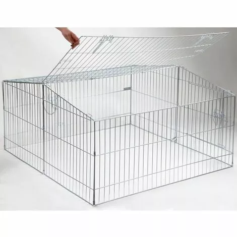 À l’intérieur de cet enclos, vos petits animaux de compagnie peuvent grignoter des légumes frais et courir. Le matériau en métal galvanisé et les couvercles articulés le rendent robuste et durable. Il est facile à assembler, à installer et à déplacer. Un parasol et une poignée de transport sont inclus.