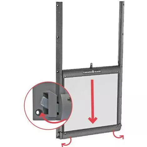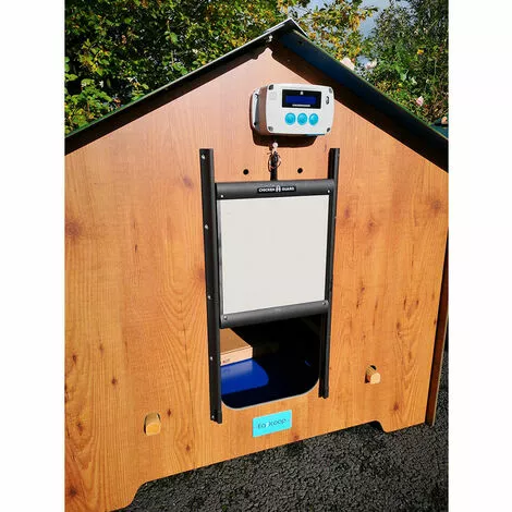 Découvrez le nouveau kit portier + trappe ChickenGuard Premium série 5 pour protéger vos poules des renards et des prédateurs et éviter le chant du coq trop tôt le matin ! La trappe se verrouille automatiquement ce qui empêche les prédateurs de la soulever. Robuste, les rails sont en plastique et la trappe en aluminium. En plus de son nouveau design, il propose 2 nouvelles fonctionnalités : -Calibrage automatique de la porte pour rendre le processus d’installation aussi simple que possible. -Fonction d’arrêt automatique qui évite à vos poules de se coincer lorsque la porte s’abaisse et cela empêche également la ficelle de s’emmêler en cas d’obstruction. Piloté par une minuterie et/ou une sonde de luminosité, le portier ChickenGuard ouvre et ferme la porte du poulailler. La minuterie programmable ferme la porte à l’heure définie même s’il fait encore jour. La programmation des heures d’ouverture et de fermeture est simple avec un menu en français et un écran LCD rétro-éclairé. Le portier est équipé d’une sonde de luminosité qui permet de le piloter en fonction de la lumière ambiante en choisissant d’ouvrir le matin avec le lever du jour ou de fermer le soir avec le couché du soleil. Vous avez le choix entre ces 2 programmes (minuterie ou sonde lumineuse) ou faire un mix des deux : opter pour un horaire d’ouverture le matin et indiquer au portier de se fermer le soir avec le couché du soleil. La sensibilité lumineuse est facilement ajustable. Il est bien sûr possible d’ouvrir et fermer manuellement la porte avec la simple pression d’un bouton. Le boîtier se fixe au-dessus de la trappe ou n’importe où ailleurs grâce à la poulie de renvoi en option. Pas de hauteur de porte minimale. Étanche et très résistant, les matériaux et composants utilisés sont de très haute qualité. Fonctionne dans des conditions météos extrêmes. Pas de câblage compliqué. Faible entretien. Aliment