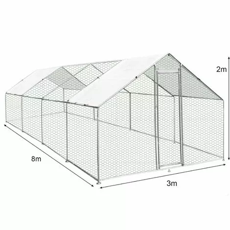 Deux bâches imperméables sont fournies gratuitement pour protéger vos animaux de la pluie ainsi que les UV. Cet enclos poulailler leur donnera une amplitude d’espace à vos animaux et assez d’espace pour mettre un poulailler fournissant un endroit sécure.