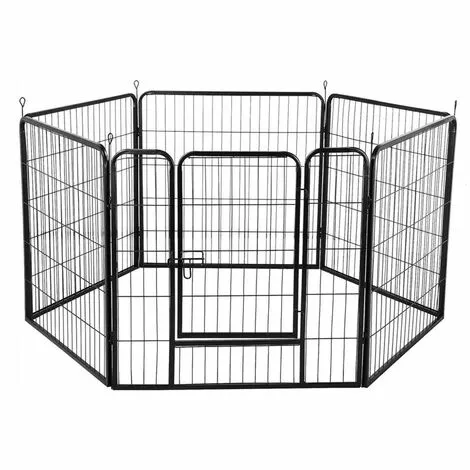 Le parc pour chien est un espace sûr pour votre animal de compagnie. Il peut se reposer pour une sieste, découvrir votre maison ou jardin sans danger et à son rythme. Vous pouvez quitter la maison sans soucis et votre toutou peut continuer à jouer. Notre enclos offre aux chiots, chiens & autres petits animaux une surface de mouvement suffisante pour se détendre. Ce parc à chiots stable et de haute qualité est votre compagnon pratique pour l’éducation de vos petits chéris. Avec l’enclos pour chien, vous pouvez créer différentes formes. L’enclos est composé de 6 panneaux amovibles de 60 x 80 cm dont un panneau avec une porte avec fermeture.
