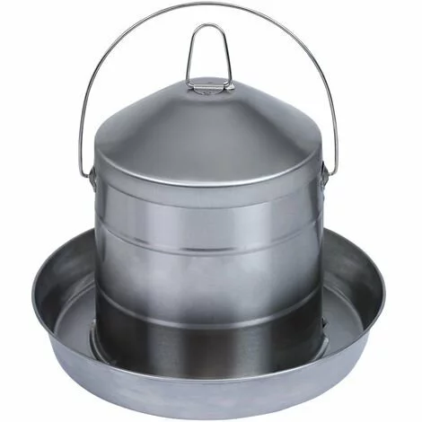 Cet abreuvoir pour volailles en acier inoxydable est très résistant. Il possède une anse de portage ainsi qu’un anneau sur le dessus. Contenance : 8L Matière : acier inoxydable Remplissage par le dessous Marque : Gaun.