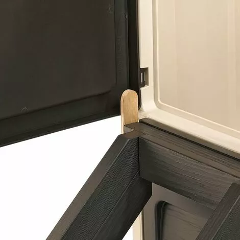 - L’échelle en bois à la porte d’entrée peut être inclinée pour un accès facile