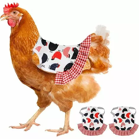 Facile à mettre et à enlever Ce tablier de selle de poulet est facile à mettre et à enlever, ce tablier de selle de poulet est élastique et peut être complètement tiré d’un côté sans blesser le poulet.