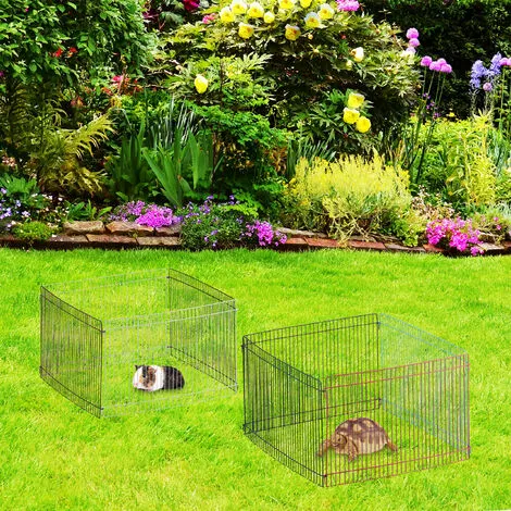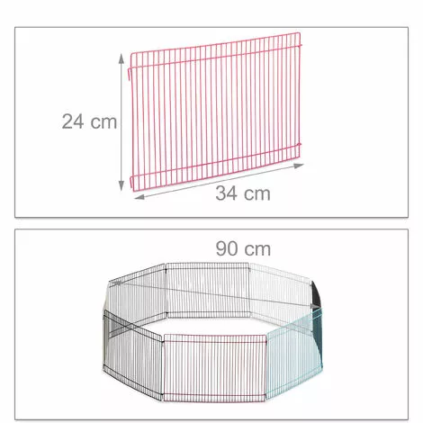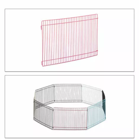 Vous cherchez un enclos alternatif où vous pouvez mettre vos petits rongeurs pendant que vous nettoyez la cage ? L’enclos en huit parties est rapidement assemblé à cet effet et, avec un espace de 1 cm entre les grilles, il offre un enclos intérieur simple pour les cochons d’inde, les hamsters et les gerbilles. Il est également bien adapté pour des cages DIY : Choisissez autant d’éléments de grille que vous le souhaitez et construisez un enclos de jeu passionnant pour vos petits animaux. Sous surveillance, vous pouvez également utiliser l’enclos à l’extérieur pour les cochons d’inde et les tortues paresseux.
