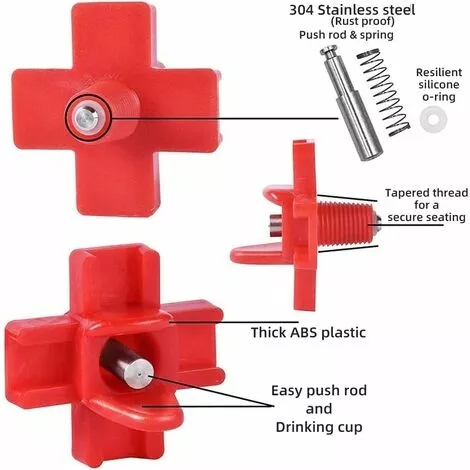 Entièrement automatique – Ce gobelet à volaille rouge remplira automatiquement l’eau, en gardant une quantité fixe, puis votre poulet recevra de l’eau fraîche et propre tout le temps, ce qui vous aidera à réduire la charge de travail pour nourrir les poulets.