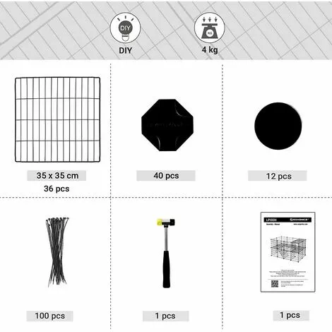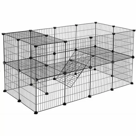 SONGMICS Enclos Modulable Pour Petits Animaux, Cage Intérieur, 2 Niveaux, Maillet En Caoutchouc Offert, Cochon D’Inde, Lapin, Assemblage Facile, 143 X 73 X 71 Cm (L X L X H), Noir LPI02H