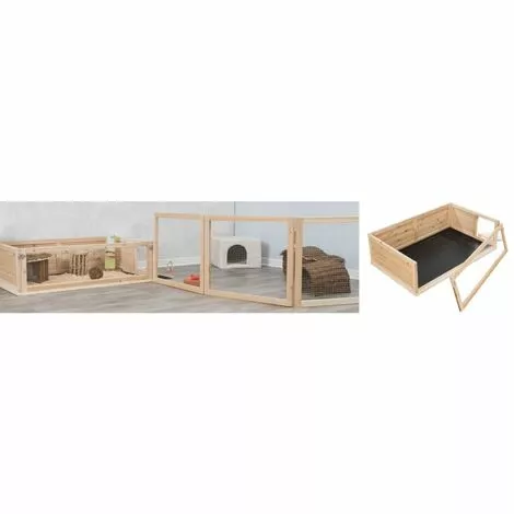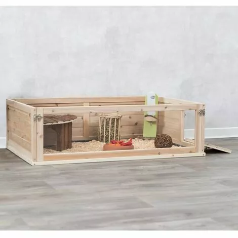 Elle offre à vos animaux de compagnie la maison parfaite et est faite de bois non traité et de verre acrylique. Elle est optimale comme dortoir. La cage a une paroi avant en verre acrylique et dispose d’un rabat de porte latéral amovible et verrouillable. Elle peut être combinée avec une enclos intérieur qui n’est pas inclus. Elle comprend également un bac en plastique amovible pour un nettoyage rapide et facile.