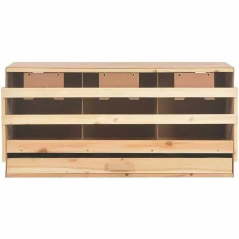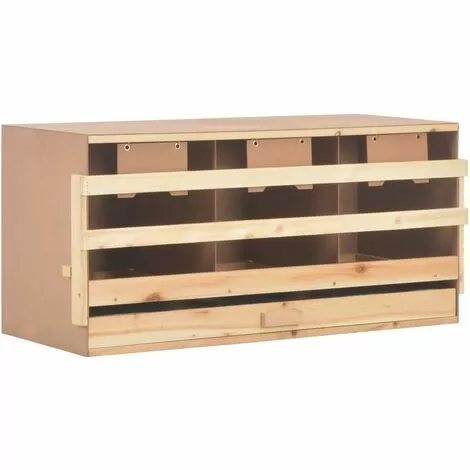 Ce nichoir fournira à vos poules un endroit confortable et protégé pour pondre leurs œufs ! Les 3 compartiments spacieux permettent à 3 grandes poules de s’installer et de pondre. Les œufs tomberont doucement à travers les trous sur le sol et dans le tiroir sous-jacent, ce qui facilite la collecte des œufs. La couche inférieure amovible vous permet de nettoyer facilement. Les perchoirs peuvent être repliés afin d’éviter que les poules perchent la nuit. Le toit plat le rend confortable pour les poules à s’installer et vous permet également d’empiler facilement plusieurs nichoirs. Vous pouvez consulter notre boutique pour les nichoirs avec un toit en pente. Fabriqué en bois de pin solide et de MDF, le pondoir est conçu pour une utilisation à long terme. Le nichoir est facile à assembler.