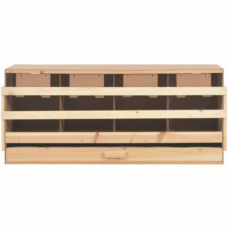Ce nichoir fournira à vos poules un endroit confortable et protégé pour pondre leurs œufs ! Les 4 compartiments spacieux permettent à 4 poules de taille moyenne de s’installer et de pondre. Les œufs tomberont doucement à travers les trous sur le sol et dans le tiroir sous-jacent, ce qui facilite la collecte des œufs. La couche inférieure amovible vous permet de nettoyer facilement. Les perchoirs peuvent être repliés afin d’éviter que les poules perchent la nuit. Le toit plat le rend confortable pour les poules à s’installer et vous permet également d’empiler facilement plusieurs nichoirs. Vous pouvez consulter notre boutique pour les nichoirs avec un toit en pente. Fabriqué en bois de pin solide et de MDF, le pondoir est conçu pour une utilisation à long terme. Le nichoir est facile à assembler.