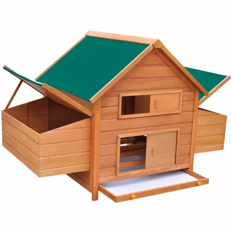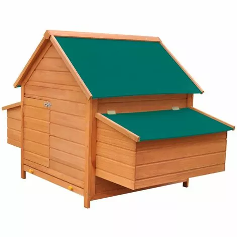 Fait en pinède de haute qualité, le poulailler est durable. Le tissu vert étanche sur les toits protège de la pluie, créant des endroits chauds et confortables pour se reposer à l’intérieur de la cabane.
