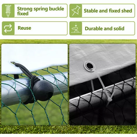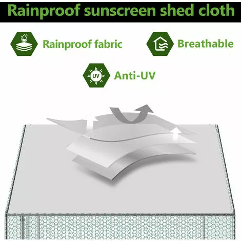 Imperméable et résistant aux UV : la couverture imperméable et résistante aux UV peut garantir que la volaille n’est pas affectée par les intempéries, économise des aliments précieux de la pluie, économise les coûts d’alimentation, plus d’aliments gaspillés ou volés. Cette étanchéité réduit également la contamination causée par les intempéries, y compris l’eau de pluie, la neige, la poussière et le sable.