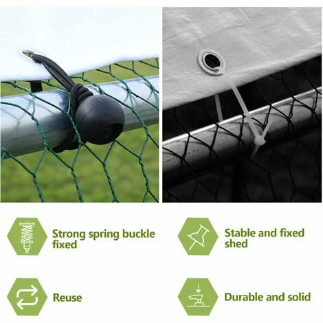 Imperméable et résistant aux UV : la couverture imperméable et résistante aux UV peut garantir que la volaille n’est pas affectée par les intempéries, économise des aliments précieux de la pluie, économise les coûts d’alimentation, plus d’aliments gaspillés ou volés. Cette étanchéité réduit également la contamination causée par les intempéries, y compris l’eau de pluie, la neige, la poussière et le sable.
