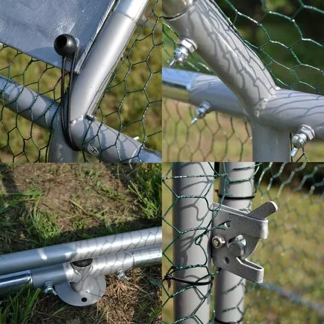 Par ailleurs, l’enclos est particulièrement stable et durable grâce à ses barres galvanisées à chaud et à son grillage recouvert en PVC.