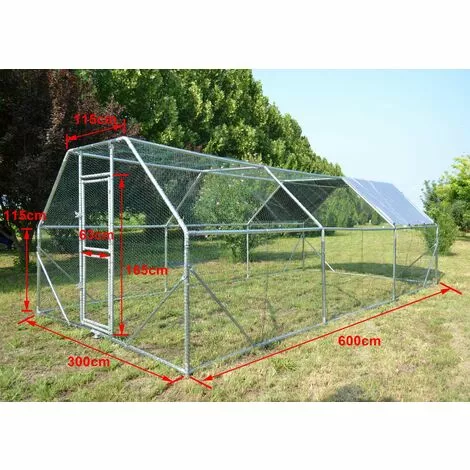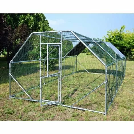Vu la taille généreuse de la cage, il serait bien trop encombrant de la faire rentrer à l’intérieur. Ainsi, pour protéger vos animaux de la chaleur ou du vent qui risque de les fragiliser, le toit de l’enclos est muni d’une bâche étanche et résistante aux rayons UV. Grâce à la taille de 2 x 3 x 2 m du toit solaire, les animaux peuvent choisir à leur guise une place au soleil ou à l’ombre.